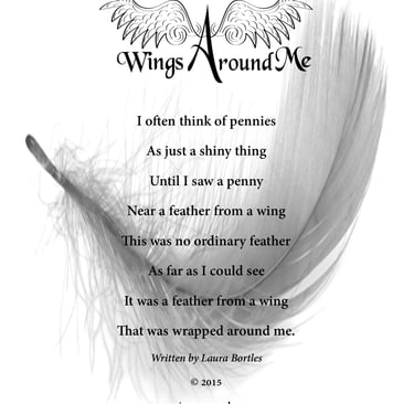 That experience deeply moved me and inspired the poem “Wings Around Me,” which I later wrote and copyrighted. Today, I include that poem in my handcrafted Remembrance Gift Collection—a heartfelt way to preserve the found pennies and feathers that bring comfort and connection. Each piece in the collection serves as a gentle reminder that our loved ones are never far; their love continues to surround us in the quietest, most meaningful ways.