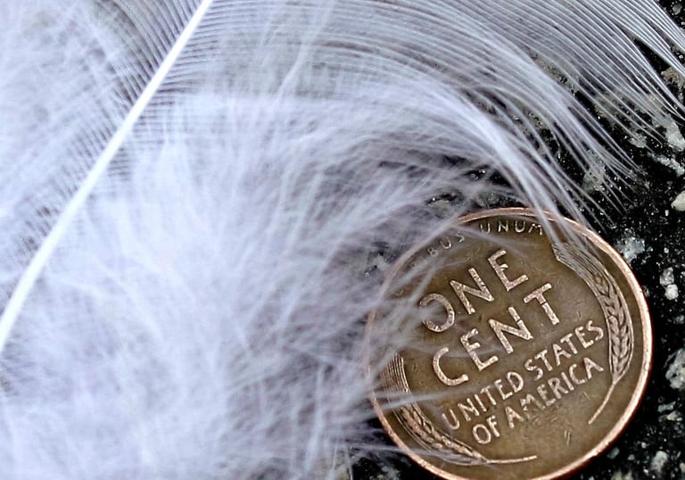 One day, I noticed a penny lying beside a feather. As I reached down to pick them up together, I felt a slight, gentle breeze pass over me. In that subtle moment, I felt surrounded by peace—as if my spirit angels were close, quietly reassuring me that everything was as it should be.